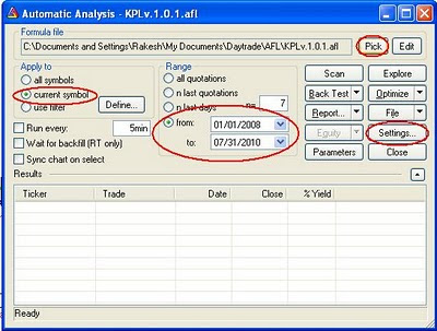 - Select the AFL containing the strategy for back test